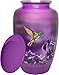 Handcrafted HummingBird Urn for Ashes: Handcrafted using top-grade Aluminum, this burial urn for ashes comes in an elegant beautiful Purple with HummingBird finish with a protective coating designed to last the years.