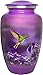 Beautiful Cremation & Burial Urn for Adults: Designed with intricate details from skillful craftsmanship, our cremation urn for adults features a Purple and HummingBird finish design.