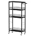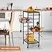 【Multi-purpose Black Slim Carts】Modern black rolling cart has a wide range of uses: kitchen rolling storage carts, slim storage cart for small spaces, bathroom ultility cart 4 tier, laundry organizer shelf with wheels, narrow island serving cart, slim laundry cart with storage, little carts with wood board, etc.