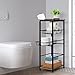 Add Storage for Bathroom - With two levels of open shelves, two metal storage baskets, and a tissue bar that dispenses paper towels at any time, this 4 tier storage shelf provides ample storage in a limited room. Up to 12.2 inches of items such as body wash and laundry detergent can be placed above the board at the bottom of the standing storage cabinet.