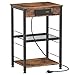 【Bedside Table with Drawer for Home】Brown nightstand for bedroom with storage drawer is 15.7(L) x 11.8(W) x 23.8(H) inches; this bed side table with USB ports provides two tier wood storage shelves and one drawer for storing smart phones, photo frames, books, alarm clock, etc.