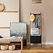 Multi-function Ladder Holder - To add more home storage needs, our leaning blanket ladder is equipped with a storage cloth bag (15.94 L x7.8 W x11.81 H inches), 2 towel hanging bars and 5 freely removable metal hooks. Perfect for living room blanket holder, bedroom blanket organizer shelf, bathroom towel hanger rack with storage, etc.