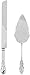 Measurements: cake server 13"L x 2.75"W; cake knife 13" x 1"W.