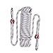 This Rope is made of High-strength polyester outer skin, high-strength inner core. Ultimate tensile force: 20KN(4,409lbs, 2,000KG); Diameter: 0.39inch (10mm); Cable Length: 65 feet (20 Meters); Number of spools: 48 pcs; Number of falls: 17; Skin slip rate: 0%; Static elongation: 3%. With two 10*10 solid big iron carabiner.