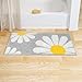 【Gray Bathroom Decor】:White and yellow daisy floral design style blends easily with the furniture or decoration in the bathroom or bedroom. The hign and low pile fluff design adds comfort to the carpet. Classic daisy flower patterned bath rugs can also be placed in modern or boho decorated bathroom,bedroom,living room,kitchen,plant room or entryway to add a touch of personality.