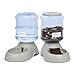 Pet food and water dispensers use gravity to ensure a consistent supply