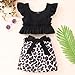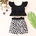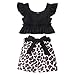 Feature: Kid's clothing sets 2pcs girls outdoor outfit sets, ruffle sleeveless crop top, leopard printed, floral graphic, hawaii style, elastic waist knee-length pants with die, elastic sweatsuit, cute outfits for little kids.