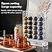 UNIQUE DESIGN: This coffee organizer features a double-sided storage design with 4 rows of storage shelves on both sides, you can sort and store by taste, making it easy to access and very space efficient. You no longer have to tidy your coffee capsules over and over again.