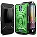 Hybrid design combines a rubberized inner case with reinforced edges for extra shock absorption and colored plastic back. Kickstand features allows you to stand your phone in horizontal and vertical position for your viewing needs.