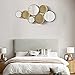 Wall Art Style: Made from metal and mirror, with a textured gold plate, this large statement piece is simple yet striking. The Overlapping welded metal discs create modern irregular shape art that is perfect for any contemporary home setting while bringing light and space to the room.
