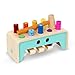Product 2: CLASSIC POUNDING TOY: The Deluxe Pounding Bench Wooden Toy with Mallet is a classic pounding toy with a design twist. As the colorful, non-removable pegs on the bench go up and down, they play peekaboo, taking turns showing their friendly smiles.