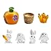 Package includes:4 Pieces mini rabbits, 1 Piece mini carrots,1 Piece basket, 1 Piece house.Excluding other things in the picture