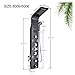 The shower panel has a rainfall waterfall shower head, spout, hand shower and body jet pattern. Includes plumbing assembly, super easy to install.