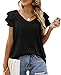 Features: Sexy v-neck t-shirts with double ruffle sleeves, short sleeve tops, solid color, fashion and trendy, add beauty to your wardrobe