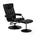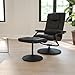 Black leather upholstery; Overstuffed padded chair and ottoman