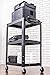 Rolling cart with four silent roll 3" furniture casters, two with locking brake, for mobility and stability.