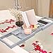 EXTENDABLE, FITS MOST TUBS: The extendable ends of the bamboo tub tray can go from 31” till 43” (or any length in between). The long length of the bath tray caddy can work on your garden tub or jacuzzi to make your soaks even more fun.