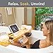 DESIGNED FOR ULTIMATE RELAXATION: Place your tablet or book against the book holder, your phone and wine glass in their designated slots within the bath tray caddy to take a blissful bath like you deserve with cool bathtub accessories.