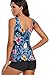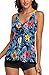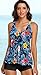 🏖Women's tankini swimsuit with flowy tank top: The lose flowy tankini top features with round neck design offers great coverage and hide your tummy; The removable padded push up bras provide you sturdy support and shaping