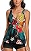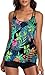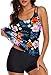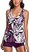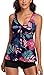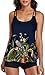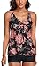 Women's tankini swimsuit with flowy tank top: The Loose flowy tankini top features with round neck design offers great coverage and hide your tummy; The removable padded push up bras provide you sturdy support and shaping