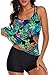 💞Women's tankini swimsuit with flowy tank top: The lose flowy tankini top features with round neck design offers great coverage and hide your tummy; The removable padded push up bras provide you sturdy support and shaping.