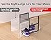 【Oversized Shoe Boxes】Inner size 14.6"x10.2"x8.7" fits shoes up to US size 13, high-top sneakers, heels, and booties are all welcome in these shoe boxes.