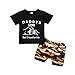 Short sleeve T-shirts tees, DADDY&SON and COOLER letter prints tops, cool camouflage short pants outfits set baby boy summer clothes