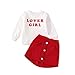 DESIGN: 2 Piece Valentines outfit for toddler girls, "LOVER GIRL" Letter print valentines day shirt, Long sleeve sweatshirt top and cute corduroy red mini skirts,unique Heart shape pocket casual button skrits set