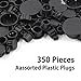 Package Includes: 350 x 8 Sizes Black Plastic Hole Plugs, including 50 x 3/16 inch, 50 x 1/4 inch, 50 x 5/16 inch, 50 x 3/8 inch, 50 x 1/2 inch, 50 x 5/8 inch, 30 x 3/4 inch, 20 x 1 Inch. NOTE: Please refer to the reminder of the size chart before buying. (Refer the Size Picture).