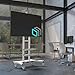 ✔️MOBILE AND PRACTICAL FLOOR TV STAND: rolling TV cart has 4 lockable wheels that provide smooth movement on hardwood, tile or carpet floors. AV shelves can hold a laptop, sound bar, Xbox or PlayStation.