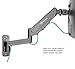 Fully adjustable articulating arm features tilt -35 ~ +35 degrees and swivel 180 degrees, thanks to gas-spring system the arm goes up and down, helping you to reduce eye, back and neck strain