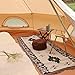ROOMY INTERIOR FOR 4-6 PERSON: Diameter 3m cotton yurt tent, the top height of 6 feet 7 inches, side wall height of 60 cm, door high of 150cm. You can stand inside the bell yurt to switch outfits; This yurt glamping tent with a large door can place 2 Single size beds, or 4 sleeping bags. Even with 6 people there will be room for a card table and board games
