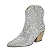 ❤Perfect Design: These fashion western cowboy boots are designed with glitter rhinestone embellishment, almond-shaped pointed toe, thick chunky block heel.Pull-on style and side zipper closure, easy to put on and take off.