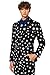 ULTIMATE CHIC: This goldy dots dinner jacket with double-pleated black tuxedo pants and a bow tie will surely work well for those classy black tie events. The Goldy Dots tuxedo features a satin shawl lapel, a soft velvet fiber and has a stylish, modern fit. With this tuxedo, standing out has never been this easy!