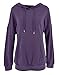 Features: rounded neckline with hood detail, long sleeves, loose fitting solid tops with pocket.