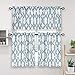 Ready Made: Each package includes 1 PAIR teal/gray geometric kitchen window curtains, measuring W27 x L36 inches each. 2"Rod pocket (1.27" diameter) fits easily with standard curtain rods.
