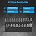 🔧【What You Will Get】: 1 * Mini Ratchet Screwdriver, 22 * Screwdriver Bits. Size: 1/4" drive, Length: 103mm. Bit Types: Trox(T5,T6,T7,T8,T9,T10,T15,T20,T25,T27,T30,T40),Schlitz(2,3 ,4,5,6) Phillips(0,1,2 ,3,), Safety(H7). The Mini Ratchet Screwdriver is compact and lightweight, perfect for tight spaces, U-shaped corners, sides and other inconvenient places.