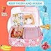 🍩Cute Girls School Lunch Box🍩:Your best-loved kids' lunch bags is now a big girls school pop lunch bag!The colorful, cute and fun pop school lunch bag not only the most fashionable crossbody lunch box for kids and adults, but also a popular sensory toy that can relieve anxiety and boredom.After meal, press the bubbles down to relax,enjoy the joy of pressing and effectively relieve anxiety and stress.