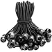 【Infinitely Extended】Ust tie two or more of cord ties loop through together. Ball bungee cords 6 inch will not fall apart which strong enough to fixed any things you want. Black high elastic stretch ball bungee ties tarp canopy tie down can be stretched to 13 inch.