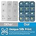 Meet Your Medication Capacity Needs: Overall size 9.13x5.11x1.18 inch; Each pill containers measures 4.52x1.18x0.9 inch;Each pill compartment is 1.1x1.18x0.9 inch. Each compartment can hold up to 6 fish oils / 9 vitamins / 12 capsules for daily use, suitable for the one who needs to take multiple medication regularly.