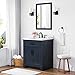 Solid wood bathroom vanity with Midnight Blue finish and engineered stone countertop