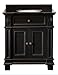 White vanity, hand carved feet, with an elegant black granite countertop