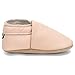 OUTSOLE MATERIAL:Suede leather anit-skid soft soles for first walking crib shoes,they are perfect for any shape feet and give baby good grip while trying to walk,they can stretch and retrat onto the feet.