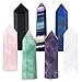 Height:About 2";Without certification;7 pcs included:Amethyst, clear quartz,pink quartz and black obsidian, Green Fluorite, Lapis Lazuli,Rainbow Fluorite(Width is smaller than others,only 0.36" width)