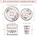 SERVES 25 GUESTS: This matching tableware set includes 25 pieces of the following: large 9-inch dinner plates, small 7-inch dessert plates, 9 ounce beverage cups, and large 3-ply napkins