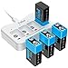 【Fast battery charger】Rechargeable 9v batteries Constant voltage charging is controlled by IC, standard charging method: Input: 5V 2A,only need 4h to fully charge 4 batteries one time.Independent charging channel, four channels can charge 1 to 4 batteries,LED displays the charging status of each slot, the red light is always on when charging, and it turns off green when it is full
