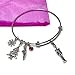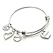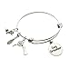 Charm bracelet comes with: Engraved pendant with "Take a Hike", back pack, compass and a mountain silhouette. Stainless steel bangle measures 60mm in diameter, expands to get on and off the wrist. Fits most wrist sizes.