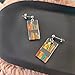 Dangle drop earrings of a bookcase filled with books pattern printed on clear acrylic and laser cut to shape. 3/4 inch wide by 1 1/2" long