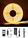 No dark spot with COB LED strip light: COB led tape light are 480 chips/m on this 16.4ft, the density of the LEDs is good balance between continuous. The light gives a soft and comfortable feeling as lighting. Aslo you can cutting the rope light at every 50MM(1.96 inches) lenth and re-joint any connector. DIY structure shape any own design. (NOT include power and remote )