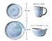 CONTEMPORARY DESIGN: artisanal reactive glaze featuring natural organic blue hues creating a modern elegance to the dinnerware set. The durable stoneware and reactive glaze make these sets difficult to scratch and break